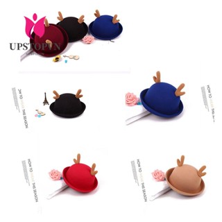 Mũ Bowler Màu Trơn Hình Sừng Hươu Mềm Mại Đáng Yêu