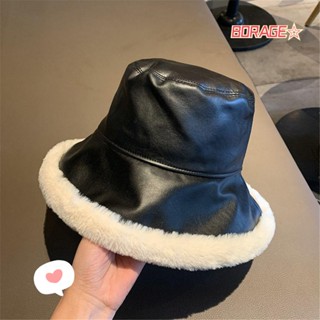 Nón Bucket Chất Liệu Da PU Dày Dặn Ấm Áp