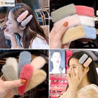 Kẹp tóc lông mềm họa tiết hình học dễ thương cho nữ