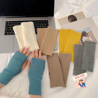 BORAG Găng Tay Dệt Kim Hở Ngón Màu Đen Cho Nữ