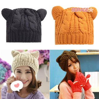 BORAG Mũ beanie Tai Mèo Màu Trơn Thời Trang Cho Nữ