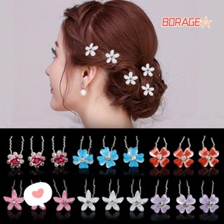 BORAG Set 10 Trâm Cài Tóc Chữ U Hoạ Tiết Hoa Đính Đá Lấp Lánh