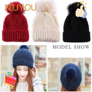 Mũ Len Dệt Kim Đính Bóng Lông Thời Trang Mùa Đông Ấm Áp