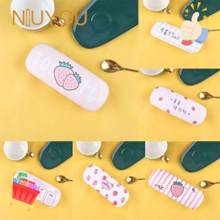NIUYOU Hộp Đựng Mắt Kính Dạng Nén Bằng PU Họa Tiết Dâu Tây Chống Bụi Cho Học Sinh