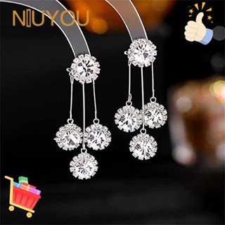 NIUYOU Bông Tai Mạ BạC 925 HìNh CáNh Hoa ĐíNh Đá Xinh XắN