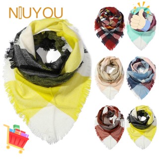 Niuyou Khăn Choàng Cổ Bằng Vải Cashmere Họa Tiết Kẻ Sọc Tam Giác Thời Trang Thu Đông Dành Cho Bạn Nữ