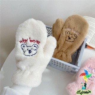 ESPO Găng Tay Thêu Hình Gấu Dễ Thương Giữ Ấm Cho Nữ