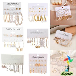 ESPO Set 6 Đôi Bông Tai Mạ Bạc Kiểu Dáng Thời Trang Cho Nữ