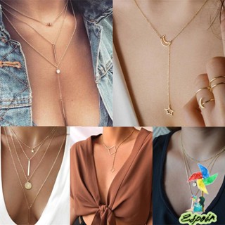 ESPO Vòng cổ Nhiều Lớp Mặt Vuông Tròn Thời Trang Cho Nữ