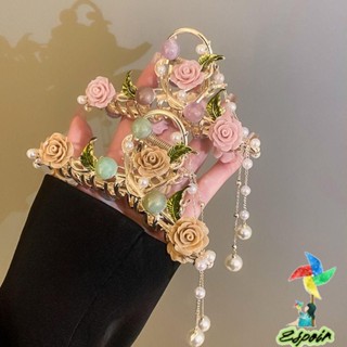 ESPO Kẹp Tóc Tua Rua Hình Cá Mập / Hoa Lá Bằng Kim Loại Chất Lượng Cao Cho Nữ