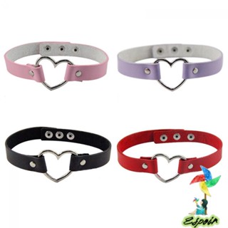 ESPO Vòng cổ Da Pu Mặt Trái Tim Nạm Đinh Tán