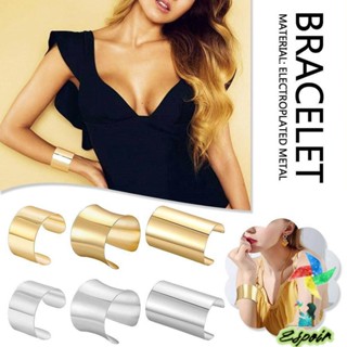 ESPO Vòng Đeo Tay Dạng Hở Bằng Kim Loại Màu Vàng / Bạc Mặt Hình Học Thời Trang Có Thể Điều Chỉnh Cho Nữ