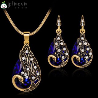 PINEVN Bộ Trang Sức Vòng cổ Và Bông Tai Hình Chim Công Đính Đá Thời Trang Cho Nữ