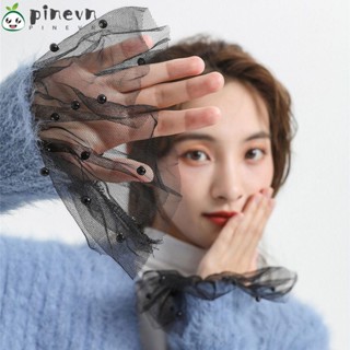 PINEVN 1 Cặp Áo Kiểu Lưới Tay Loe Xếp Ly Hai Lớp Giữ Ấm Cổ Tay Có Thể Tháo Rời