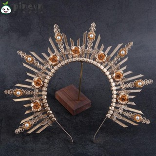 PINEVN Vương Miện Cài Tóc Cô Dâu Màu Vàng Thiết Kế Mới
