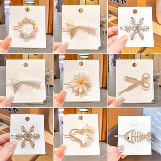 Kẹp Tóc Kim Loại Đính Hạt Ngọc Trai Phong Cách Hàn Quốc