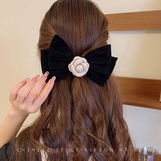 Kẹp Tóc Hình Nơ Vải Nhung Màu Đen Phong Cách Hàn Quốc Cổ Điển Thời Trang Cho Nữ
