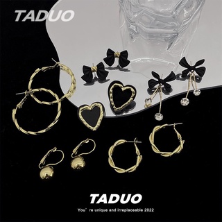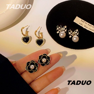 Khuyên Tai Màu Đen Đính Nơ Phong Cách retro Độc Đáo