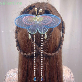 Trâm Cài Tóc Hình Bướm Đính Ngọc Trai Và Ruy Băng Dài Phong Cách Cổ Điển Cho Nữ