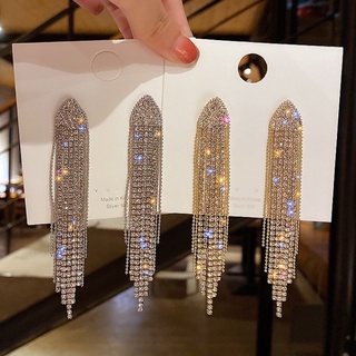 Bông Tai Mạ Bạc 925 Kiểu Tua Rua Dài Đính Kim Cương Sang Trọng Cá Tính