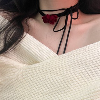 Vòng Cổ Choker Dây Nhung Dài Đính Hoa Hồng