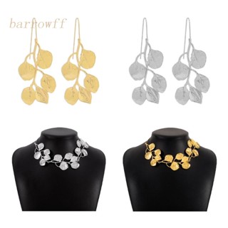Bộ Vòng cổ + Bông Tai Bằng Kim Loại Màu Vàng Hình Lá Cây Thời Trang Cho Nữ