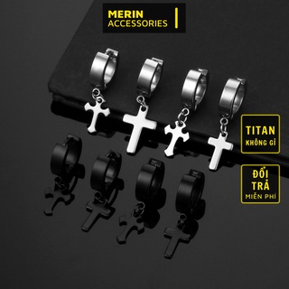 Khuyên Tai Tròn Hình Ngôi Sao Chữ Thập Thời Trang Nam Nữ Merin Gre Earing Màu Bạc Đẹp Cá Tính Titan Không Gỉ