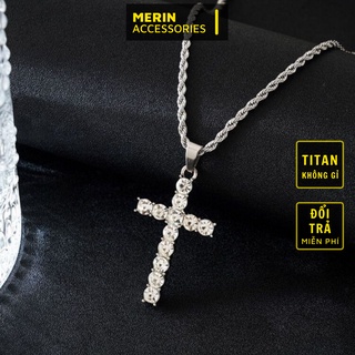 Dây Chuyền Nam Nữ Mặt Chữ Thập Merin. Accessories Màu Bạc Đẹp Cao Cấp - Vòng Cổ Nam Chất Liệu Titan- Vòng Cổ Thánh Giá