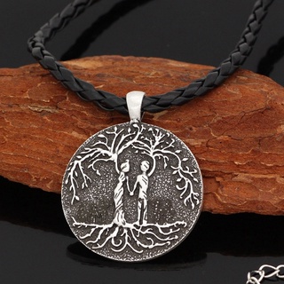 Vòng cổ Da Mặt Cây Sự Sống Kim Loại Không Rỉ Phong Cách Vintage Cho Nam