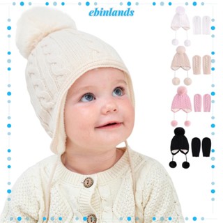 EBINLANDS Bộ Găng Tay + Mũ Len + Bóng Lông Cho Bé
