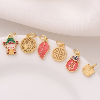 hạt charm Mặt Dây Chuyền 14K Hình Fu Bằng Đồng Mạ Vàng Dễ Thương diy