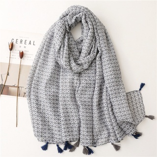 Khăn Choàng Cotton Lanh Họa Tiết Hình Học Phong Cách Mới