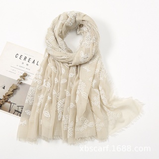 Khăn Choàng Cotton Lanh Mềm Mại Hoạ Tiết Hoa Tuyết Hợp Thời Trang