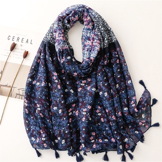 Khăn Choàng Cổ Vải Lanh Cotton Mềm Mại Phối Tua Rua Họa Tiết Hoa Mận