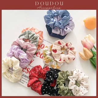 Dây buộc tóc Scrunchies DOUDOU Dây cột tóc nữ vải mềm mịn họa tiết màu sắc xinh xắn thời trang FQ011