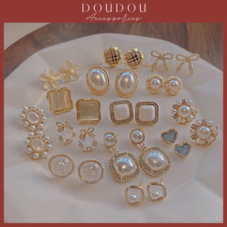 Bông tai ngọc trai nhân tạo DOUDOU Khuyên hoa tai nữ phong cách Hàn Quốc chất liệu bạc 925 thời trang EH020