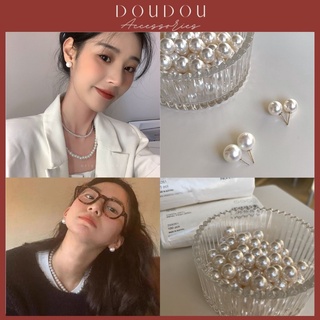 Bông tai ngọc trai nhân tạo DOUDOU Khuyên tai nữ phong cách Hàn Quốc thanh lịch chất liệu bạc 925 thời trang EH014