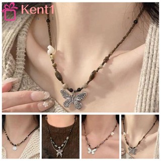 KENT1 Vòng cổ Mặt Hình Bướm Đính Đá Pha Lê Kim Loại Thủ Công Màu Đen Phong Cách Trung Hoa Cổ Điển Cho Unisex