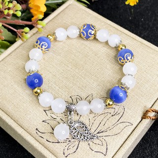 Vòng Tay Mệnh Thủy ( Kim ) - Vòng Tay Nữ Mã Não Trắng Mix Lá Xinh Xắn V382-8