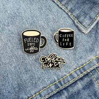 Huy hiệu cài áo hình tách cà phê màu đen thời trang