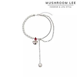 Vòng Cổ Mushroom Lee Ngọc Trai Dạ Quang Pha Lê Đỏ Broken Heart