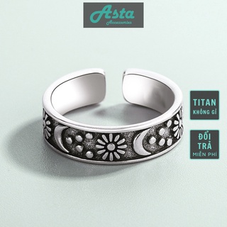 Nhẫn nam nữ tròn Asta Accessories màu bạc thời trang chất Titan đẹp đơn giản không gỉ - Nhẫn Sun & Moon