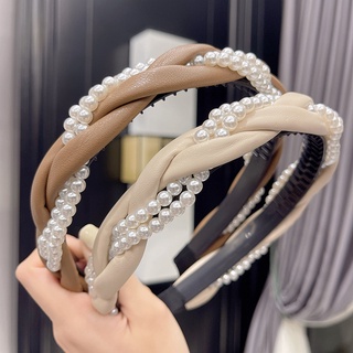 Băng Đô Rửa Mặt Thắt Nút Chéo Bằng Da Nhỏ Gọn Hương Thơm Ngọc Trai Sang Trọng Mùa Thu / Đông