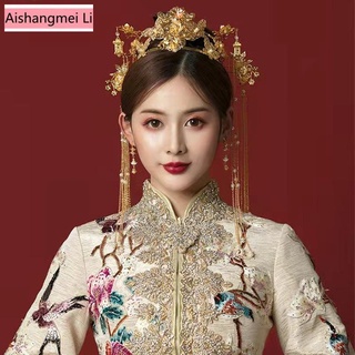 [Aishang Trang Sức Đẹp] Trâm Cài Tóc Xiuhe Vàng Tích Hợp Phụ Kiện Hóa Trang Cô Dâu Phong Cách Trung Hoa Cổ Điển Xiuhe Xiuhe Xiuhe