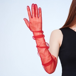 Găng Tay Lưới Dài 70CM Mỏng Màu Đỏ Rượu Vang Phụ Kiện Cho Cô Dâu