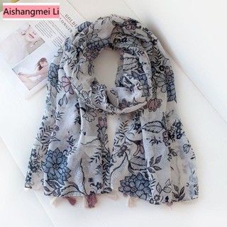 [Aishang Trang Sức Đẹp] Khăn Choàng Cotton Lanh Dài Tua Rua Hình Hoa Phong Cách Mới Dành Cho Nữ Đi Biển
