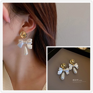 Bông Tai Mạ Bạc 925 Hình Nơ Đính Ngọc Trai Phong Cách Hàn Quốc