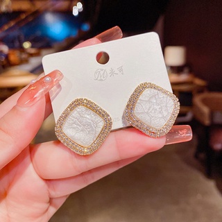 Khuyên Tai Kim Bạc S925 Hình Vuông Đính Đá Opal Cao Cấp Hợp Thời Trang Cho Nữ