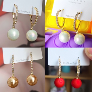 Khuyên Tai Kim Bạc S925 Đính Ngọc Trai Nhân Tạo Phong Cách Hàn Quốc