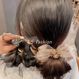 Dây Buộc Tóc Cao Su Co Giãn Phối Nơ Đính Đá Phong Cách Hàn Quốc Cho Nữ
